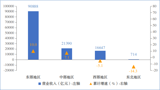 圖5 電子信息制造業(yè)分地區(qū)營業(yè)收入增長情況