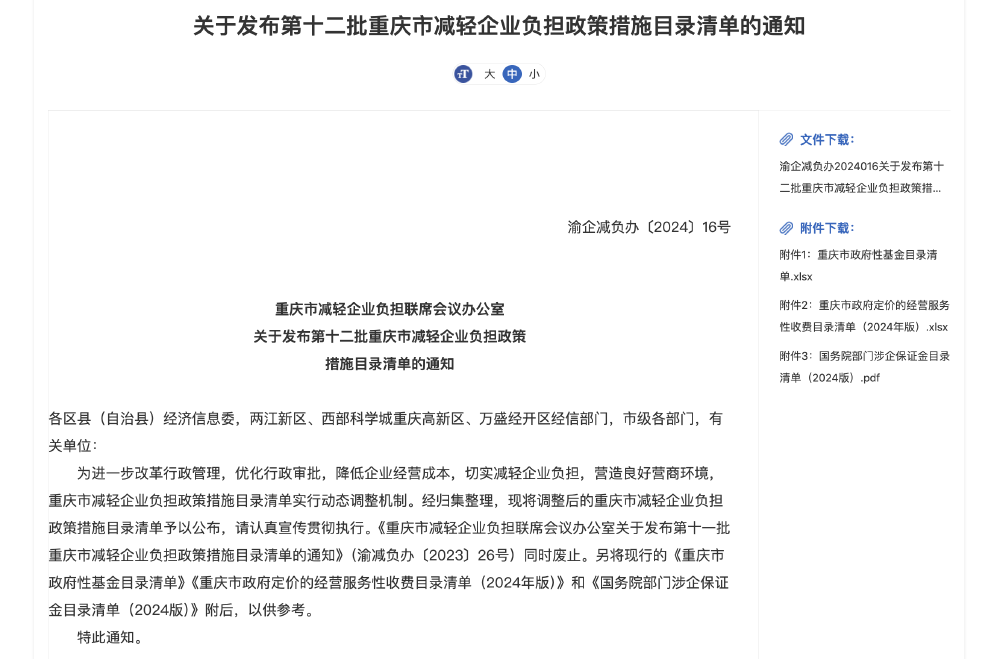 《清單》詳細(xì)內(nèi)容可在重慶市經(jīng)濟(jì)信息委官網(wǎng),搜索《重慶市減輕企業(yè)負(fù)擔(dān)聯(lián)席會(huì)議辦公室關(guān)于發(fā)布第十二批重慶市減輕企業(yè)負(fù)擔(dān)政策措施目錄清單的通知》查看。