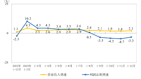 12月份,規(guī)模以上工業(yè)企業(yè)利潤同比增長11.0%。