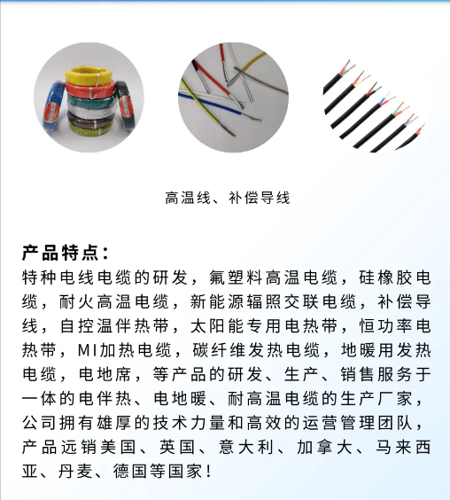 鵬申公司從事:特種電線電纜的研發(fā),氟塑料高溫電纜,硅橡膠電纜,耐火高溫電纜,新能源輻照交聯(lián)電纜,補(bǔ)償導(dǎo)線,發(fā)熱電纜,自控溫伴熱帶,太陽能專用電熱帶,恒功率電熱帶,MI加熱電纜,碳纖維發(fā)熱電纜,地暖用發(fā)熱電纜,電地席等產(chǎn)品的研發(fā)、生產(chǎn)、銷售服務(wù)于一體的電伴熱、電地暖、耐高溫電纜的生產(chǎn)廠家,本公司的自控溫電熱帶擁有三層共擠雙絕緣的技術(shù)生產(chǎn)流水線的國(guó)家高新技術(shù)企業(yè),公司擁有雄厚的技術(shù)力量和高效的運(yùn)營(yíng)管理團(tuán)隊(duì),產(chǎn)品遠(yuǎn)銷美國(guó)、英國(guó)、意大利、加拿大、馬來西亞、丹麥、德國(guó)等國(guó)家!